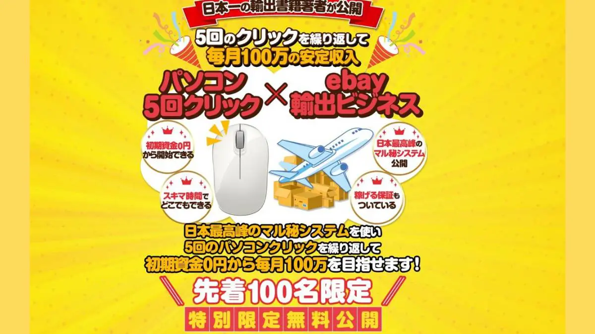 パソコンを5回クリックするだけで毎月100万円の安定収入と謳っていますが、