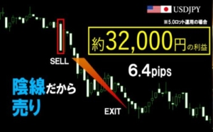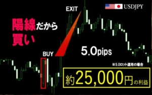 ローソク足が陽線なら買い、陰線なら売りという非常にシンプルで初心者にもわかりやすいロジックです。